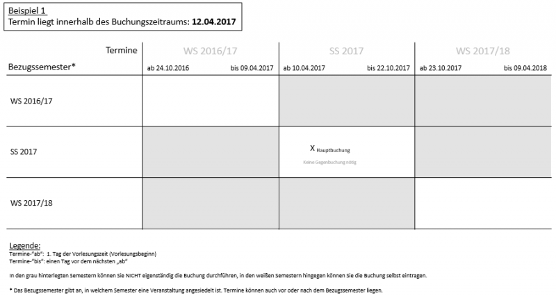 Szenario 1: Der Termin liegt innerhalb des Buchungszeitraums des Veranstaltungssemesters