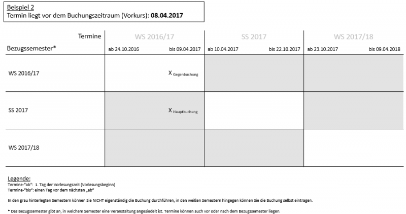 Szenario 2: Der Termin liegt vor dem Buchungszeitraum des Veranstaltungssemesters